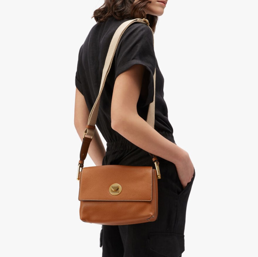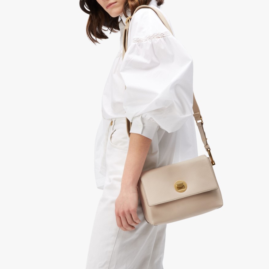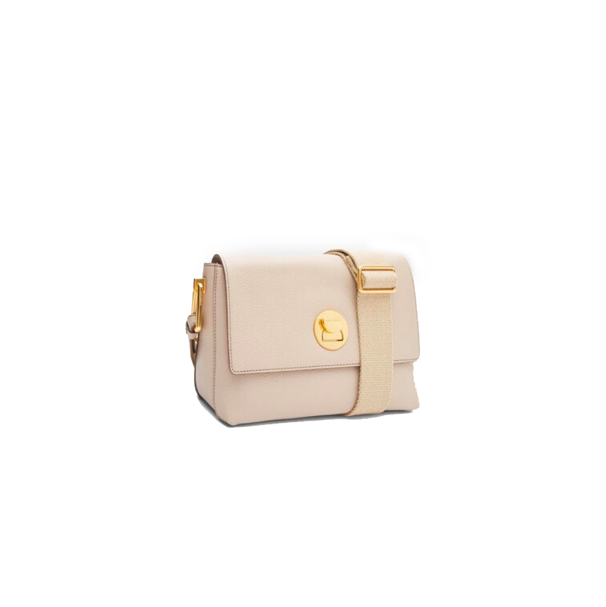 Borsa a tracolla COCCINLLE linea LIYA , realizzata in pelle bottalatino , caratterizzata dalla chiusura in metallo a clessidra , tracolla in cordura regolabile. Misure: 23x16x10