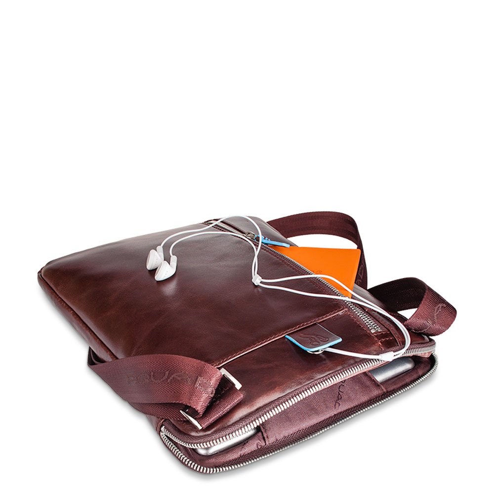 Borsello PIQUADRO porta tablet doppia tasca frontal Blue Square, realizzato in pelle bovina, chiusura con cerniera, taschini esterni con zip , taschini interni porta oggetti. Misure:21,5x24,5x5