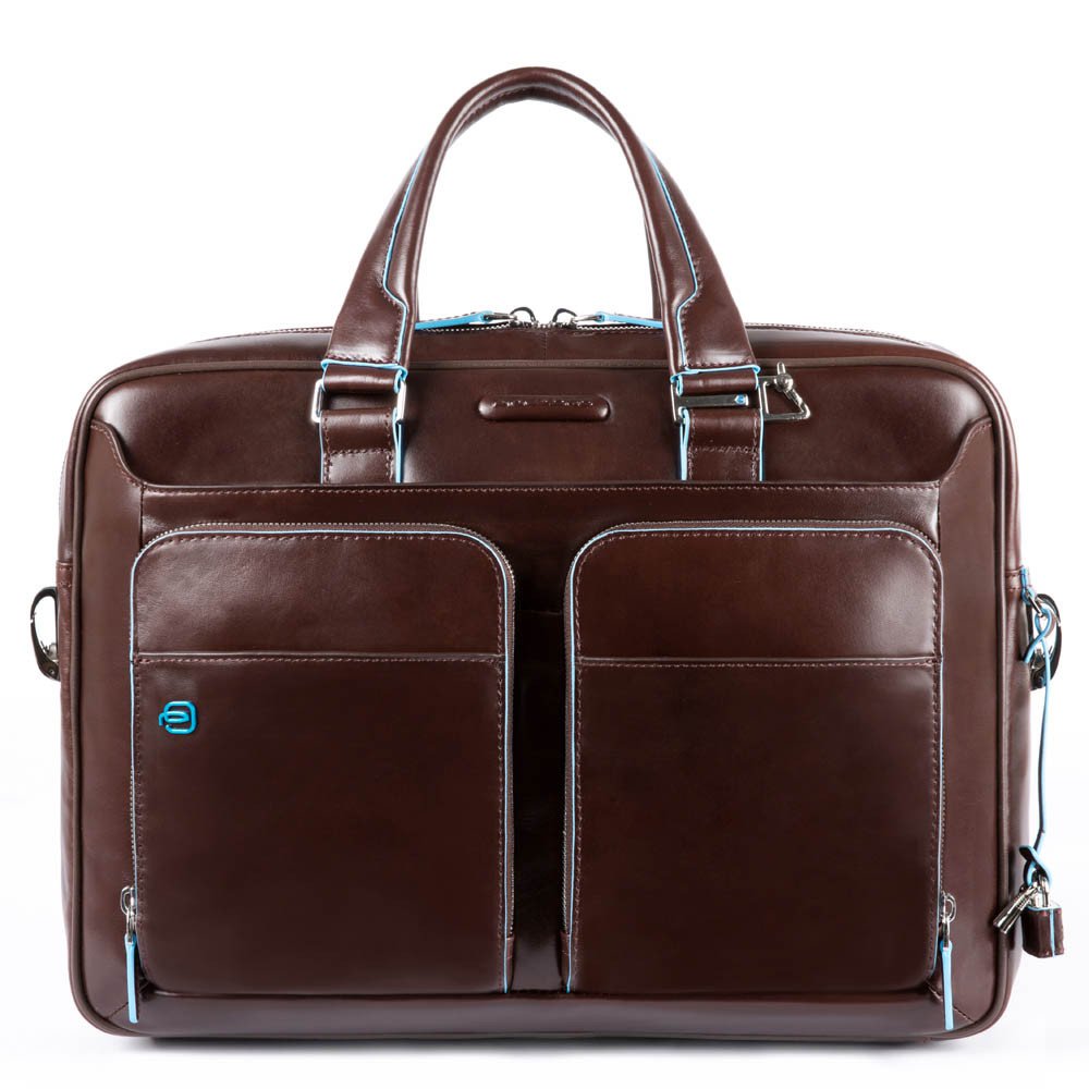 Descrizione: Cartella professionale due manici PIQUADRO, linea Blue Square,con imbottitura computer e tablet, tasche interne porta oggetti,caratterizzata dai due tasconi con cerniera anteriori e vano con cerniera posteriore,tracolla regolabile.Misure:39x28.5x10