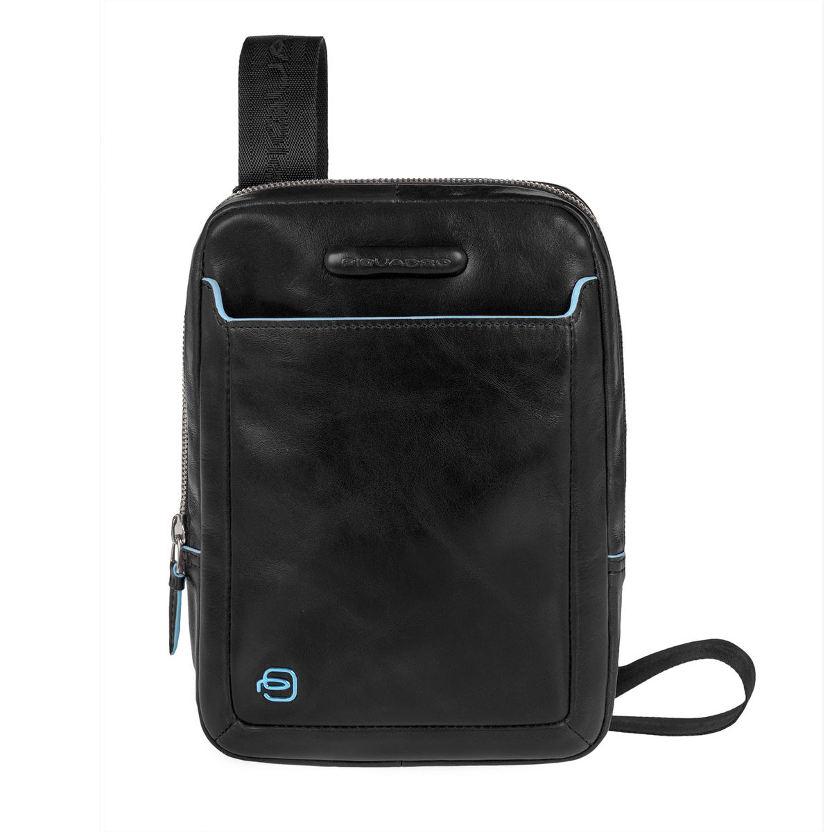 Borsello tracolla organizzato porta tablet Mini Blue Square di PIQUADRO, comodo alleato per il lavoro e il tempo libero, realizzato in pelle bovina è dotato di imbottiture intere e taschini porta oggetti. Misure: 16x22x4,5 cm