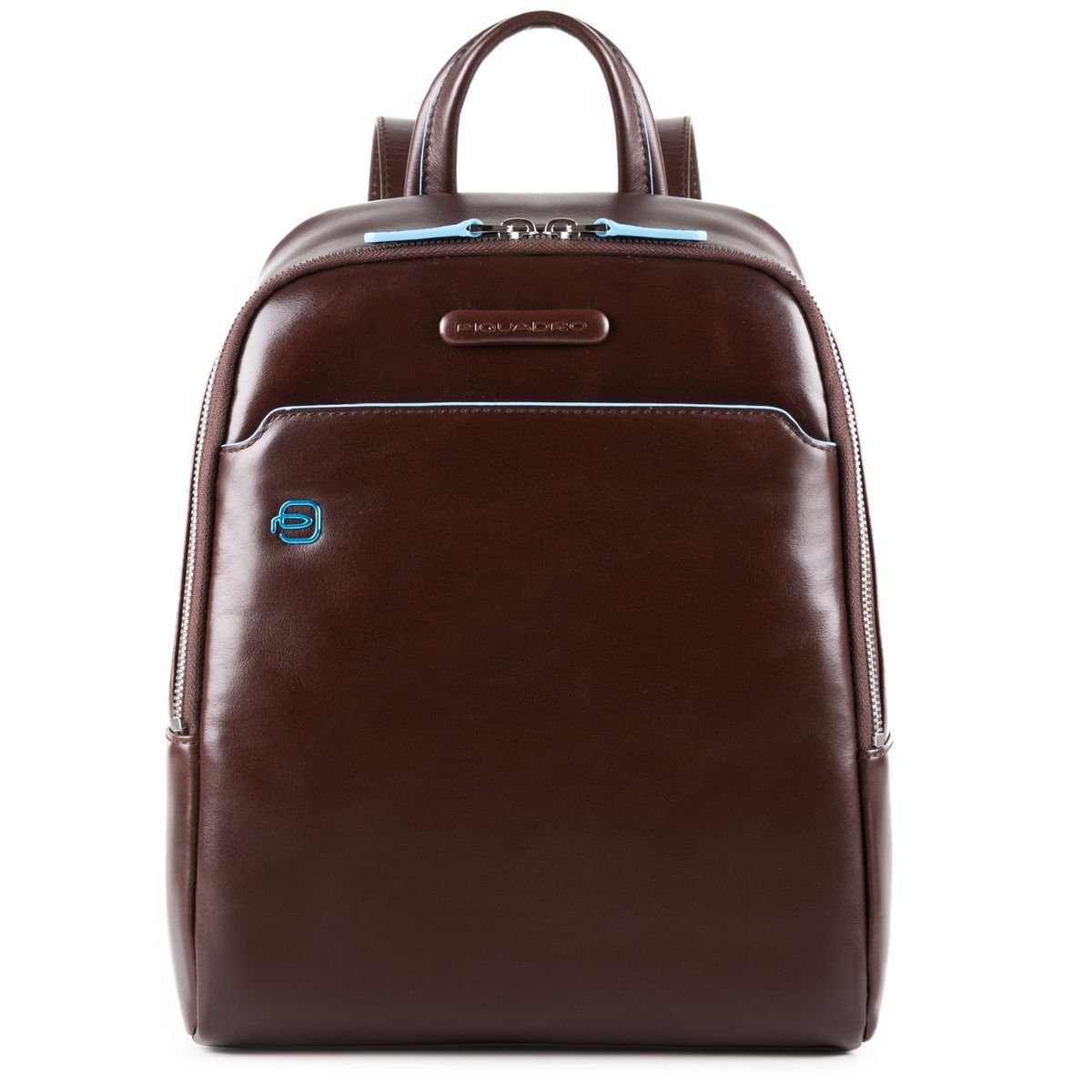 Zaino PIQUADRO piccolo in pelle Blue Square, realizzato in pelle bovina, imbottitura porta tablet, cerniere porta oggetti interne ed esterne. Misure: 22x28x1