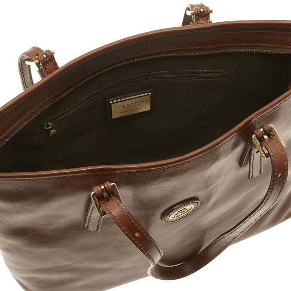 Descrizione: Shopping in cuoio TH BRIDGE linea "Story Donna" storica icona del marchio, è realizzata in cuoio pienofiore, chiusura con zip, cerniera interna porta oggetti, manici regolabili.