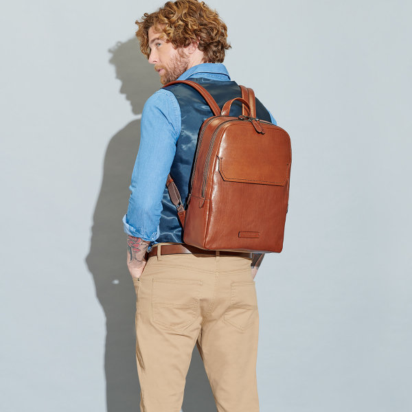 Perfetto per il viaggio e il tempo libero. Il giusto connubio tra praticità ed artigianalità. Due vani chiusi con cerniera, tasca porta computer, tasca porta tablet, cerniera interna porta oggetti. Misure: 30x40x12 cm