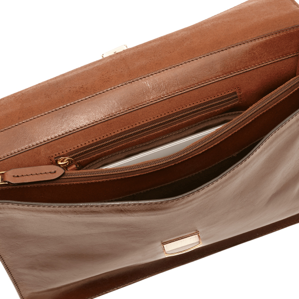 La cartella in pelle The Bridge ha un design pratico ed essenziale. Minimale e di classe, è perfetta, anche in viaggio, per custodire i tuoi documenti più importanti. Misure: 40 x 30 x 11 cm